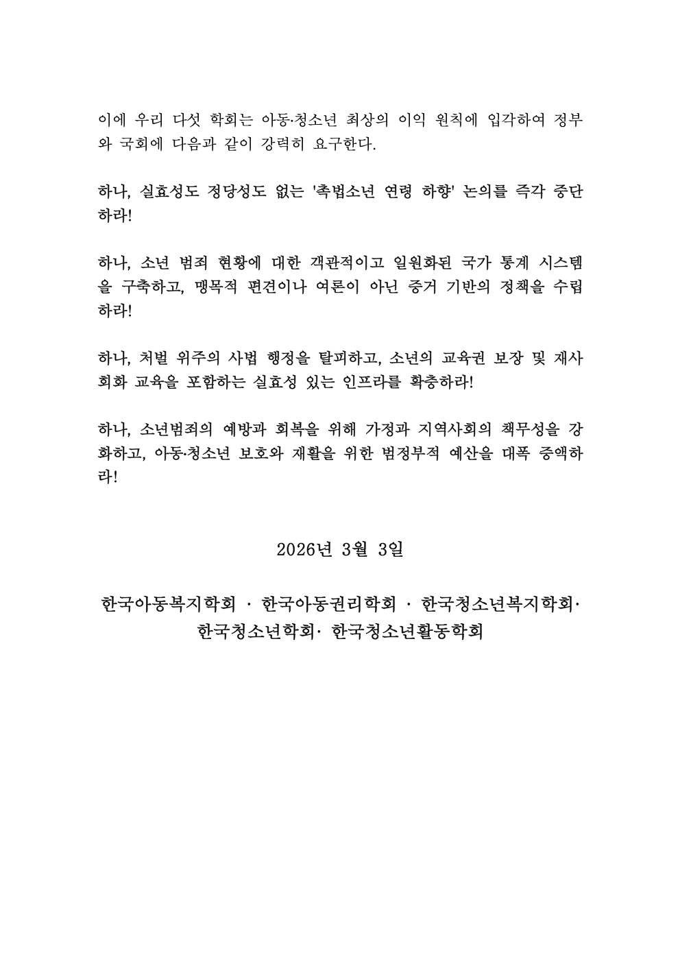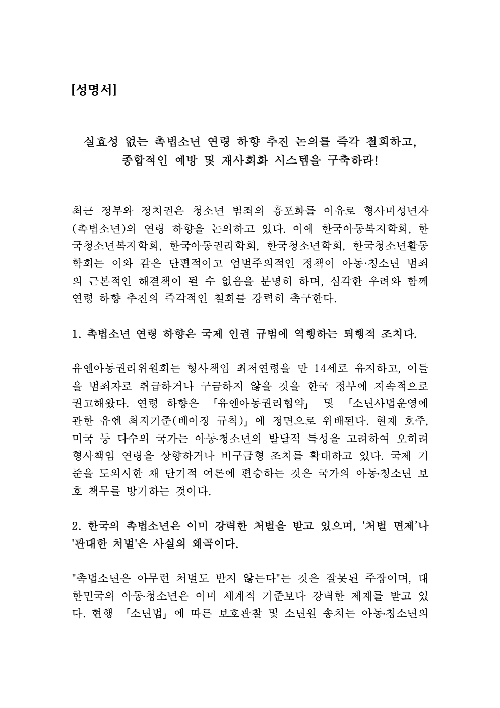 더보기촉법소년 연령하향 관련 아동청소년 5개 학회 공동성명서