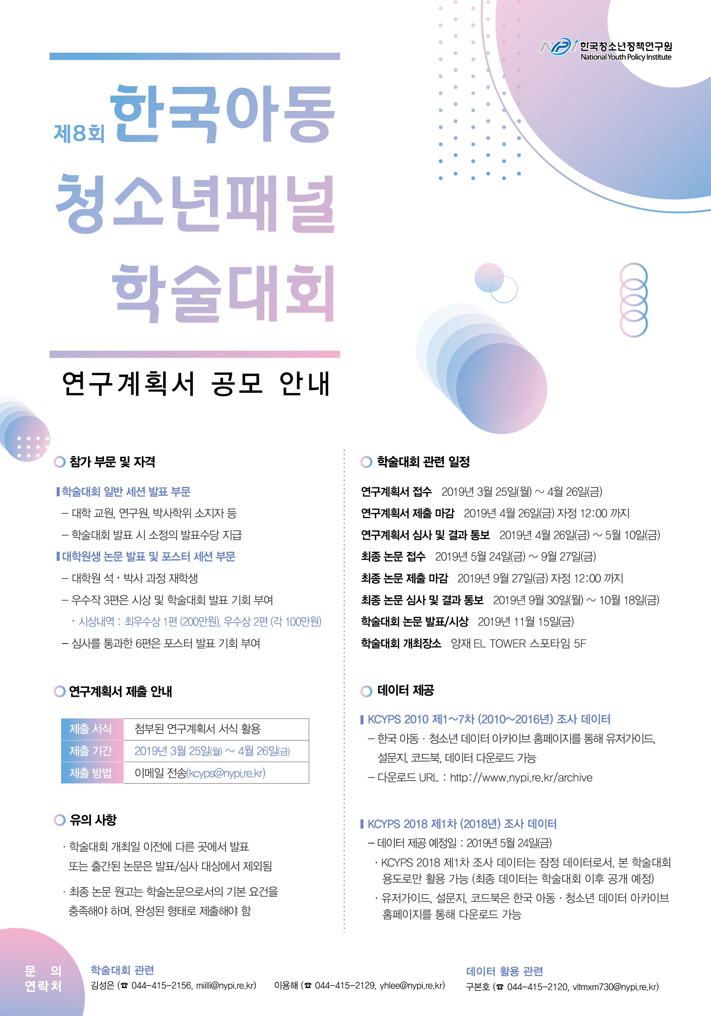 제8회 한국아동청소년패널 학술대회 : 연구계획서 공모 안내