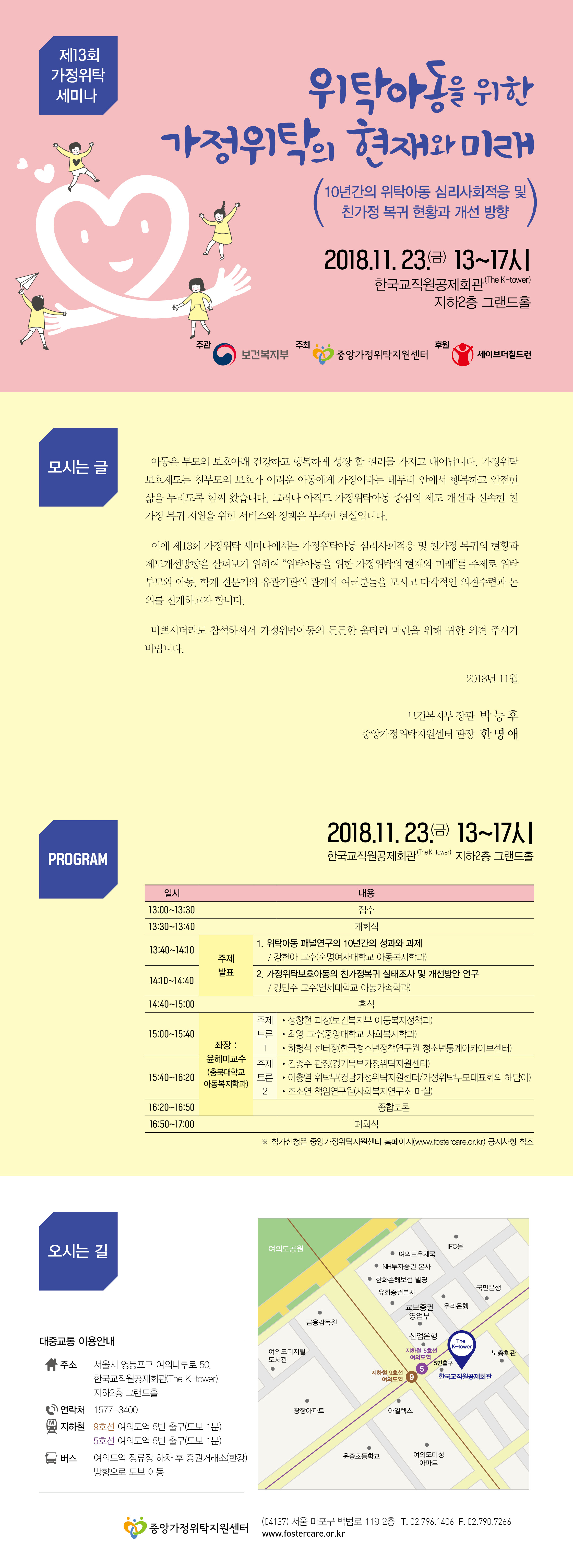 [홍보] 중앙가정위탁지원센터 제13회 가정위탁 세미나 참석 및 개최안내