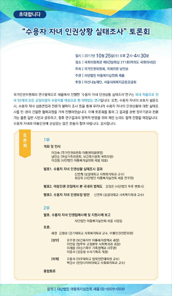 '수용자 자녀 인권상화 실태조사' 토론회에 모십니다
