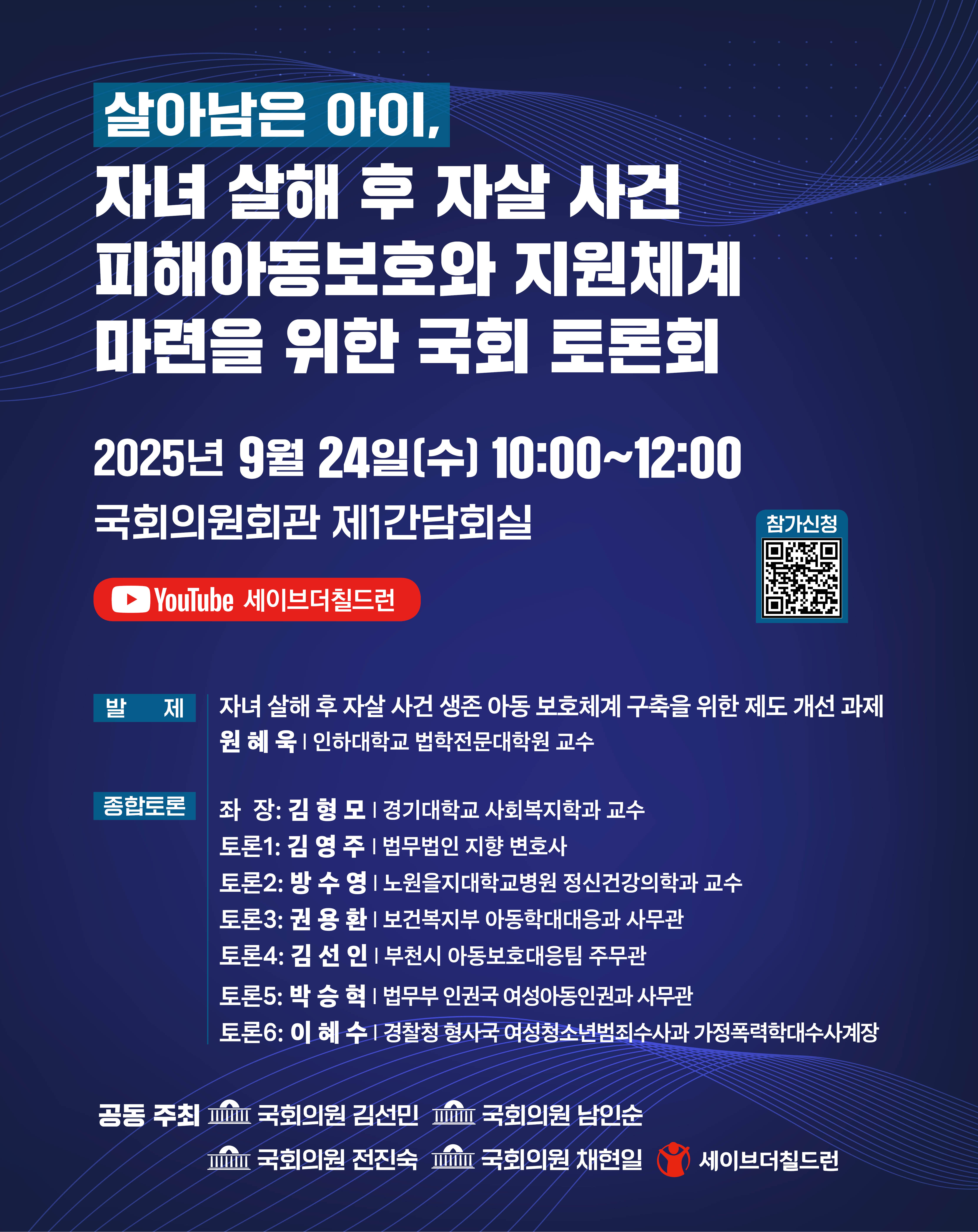 - 공동주최: 국회의원 김선민, 남인순, 전진숙, 채현일, 세이브더칠드런