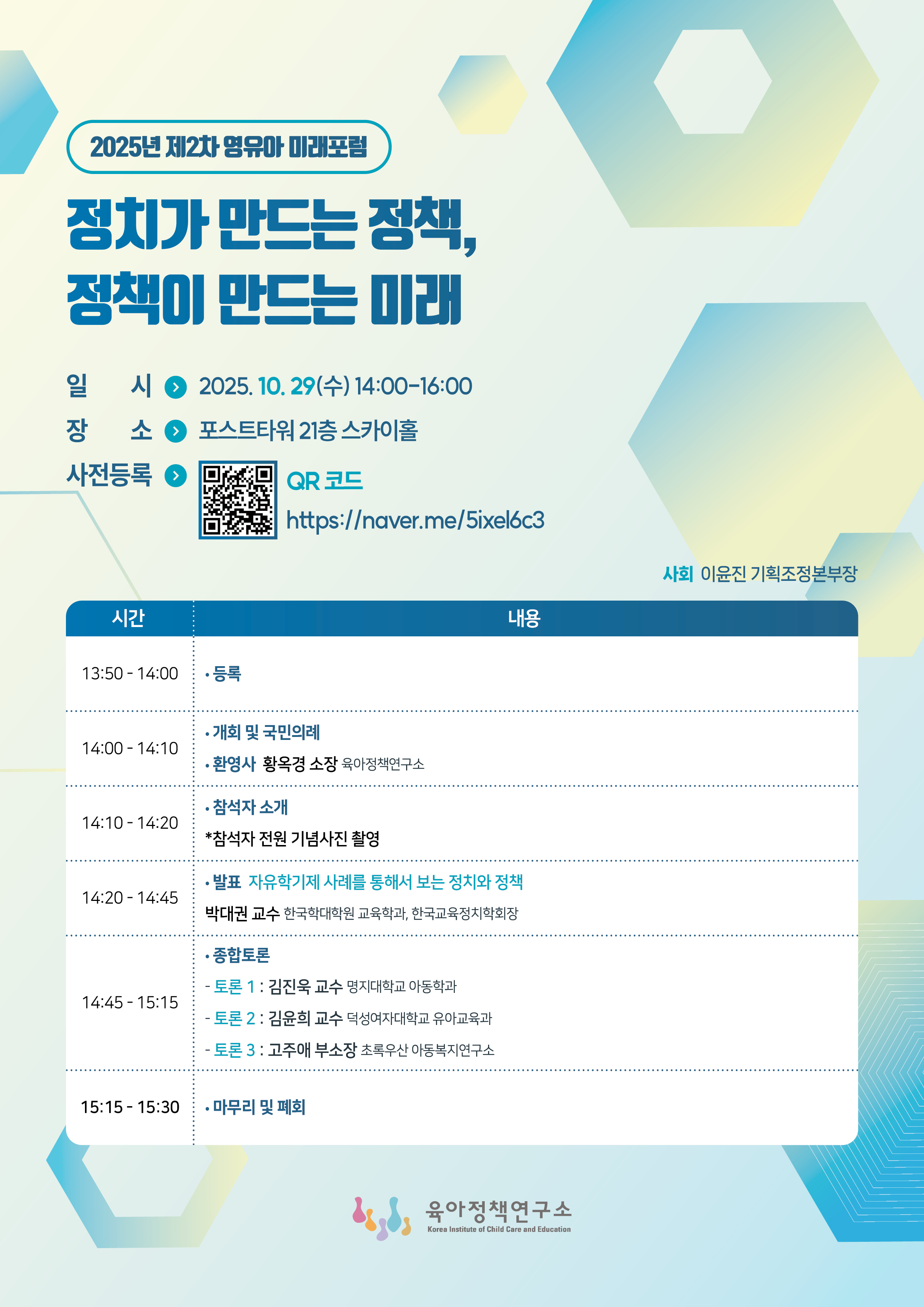 [육아정책연구소] 2025년 제2차 영유아 미래포럼 안내 및 홍보