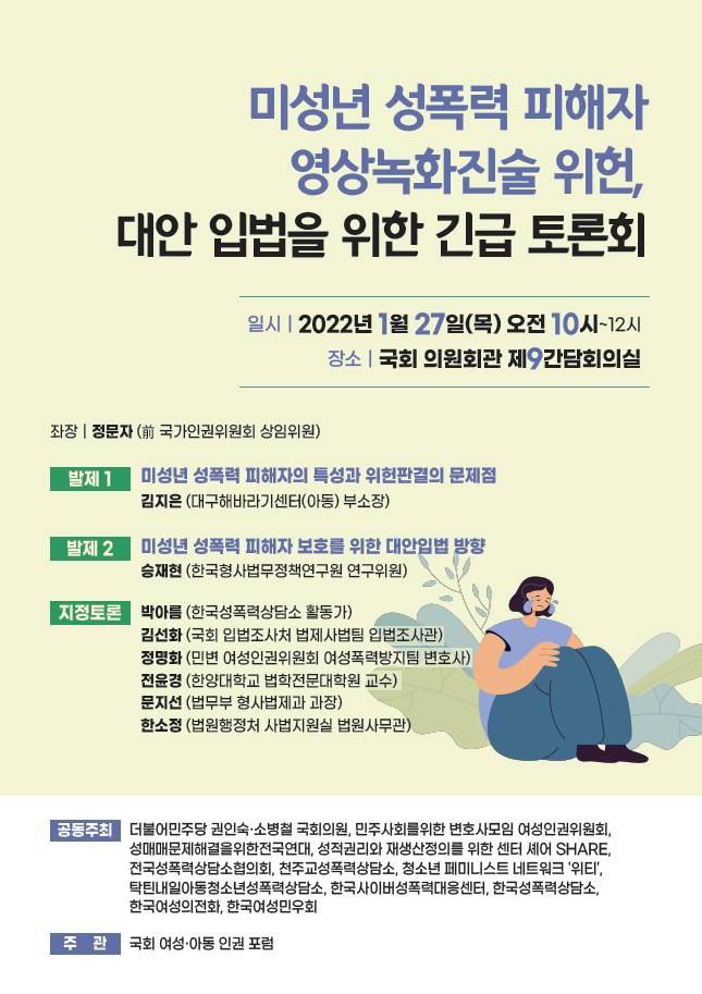 [홍보]미성년 성폭력 피해자 영상녹화진술 위헌, 대안 입법을 위한 긴급 토론회
