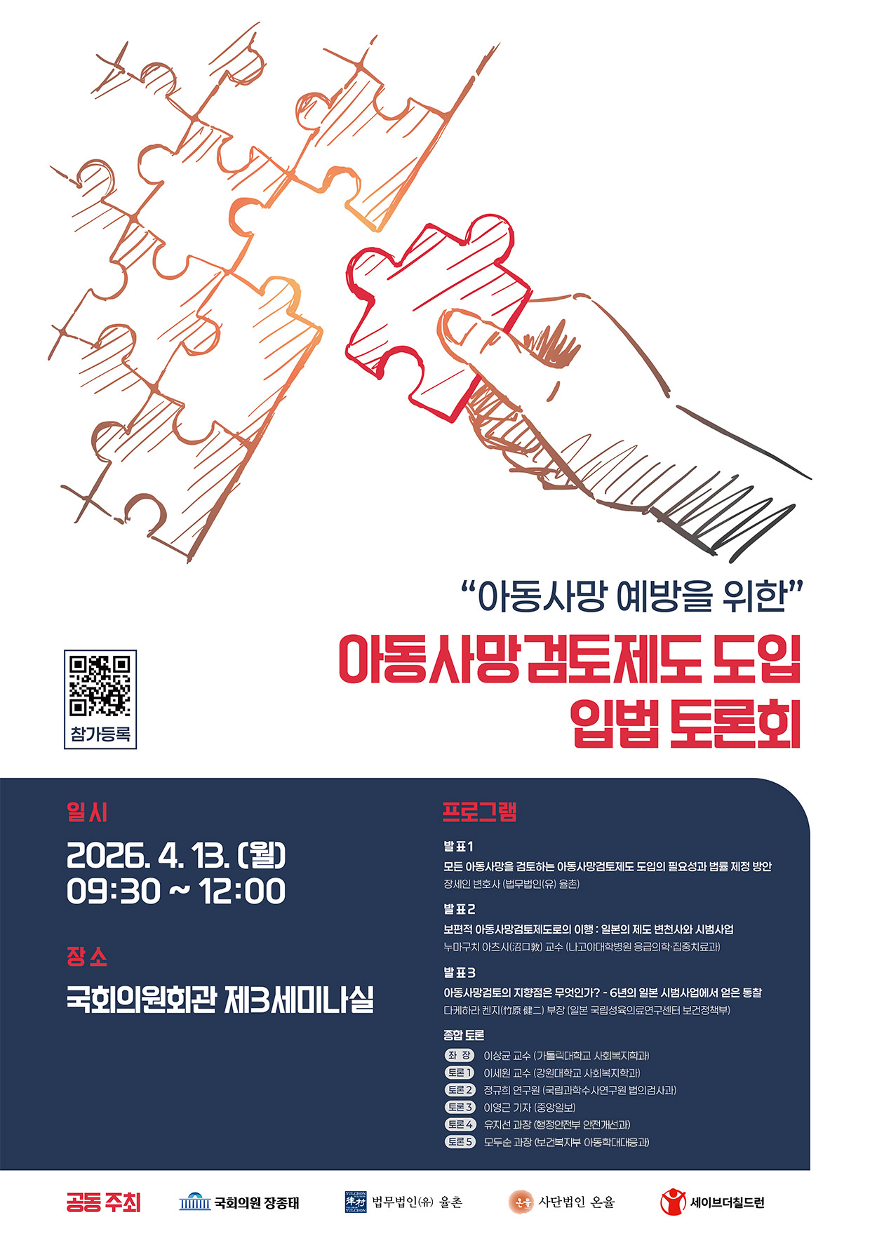아동사망검토제도 도입을 위한 입법토론회를 아래와 같이 공동주최합니다.